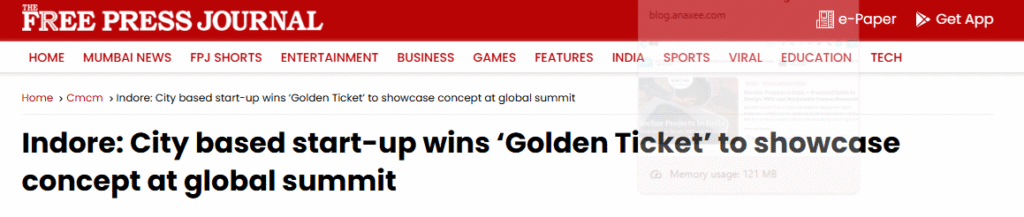 The Times of India and Free Press Journal both covered the story, emphasizing how an Indore-based startup representing India’s Tier-2 ecosystem had earned global attention for its scalable impact model.